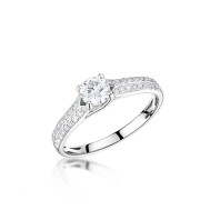 Solitaire engagement ring with pave set shoulders